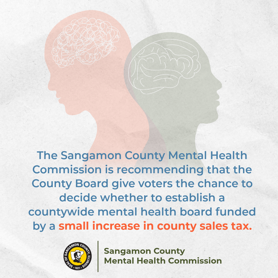 After months of research, the Sangamon County Mental Health Commission has recommended that the Sangamon County Board ask voters on the March 17, 2026 ballot whether to establish a countywide Mental Health Board — funded by a modest increase in the county sales tax. The commission submitted its final report and why this is needed in its recommendations to the county board on November 10, 2025. Read the final report here.